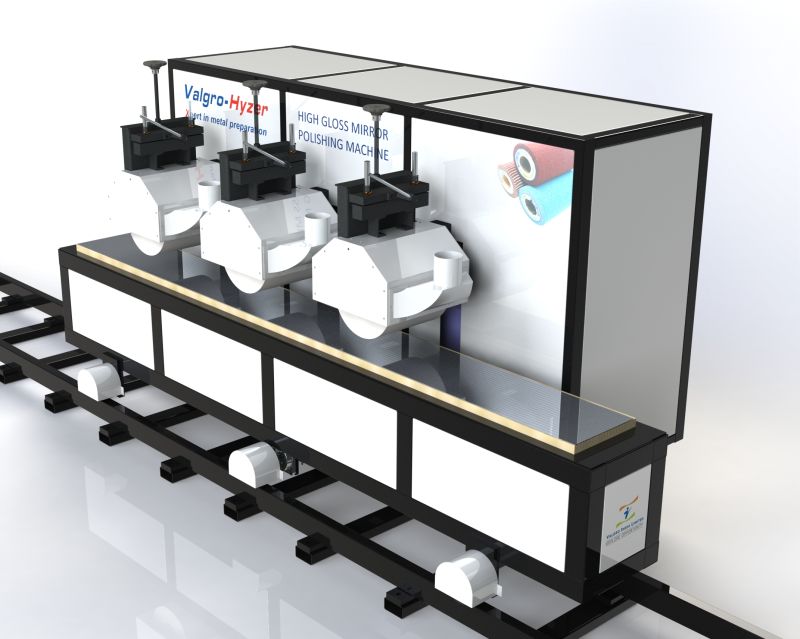 The Valgro Aluminium Sheet Polishing Machine is a high-performance finishing solution designed to produce fine mechanical finishes such as satin, brush, or hairline on aluminium sheets before anodising. It removes scratches, marks, and surface impurities using precision abrasive brushes, ensuring smooth, uniform surfaces and consistent preparation for further coating or finishing. The machine helps reduce chemical etching time, minimize water usage, and lower overall production costs, while maintaining excellent surface quality.