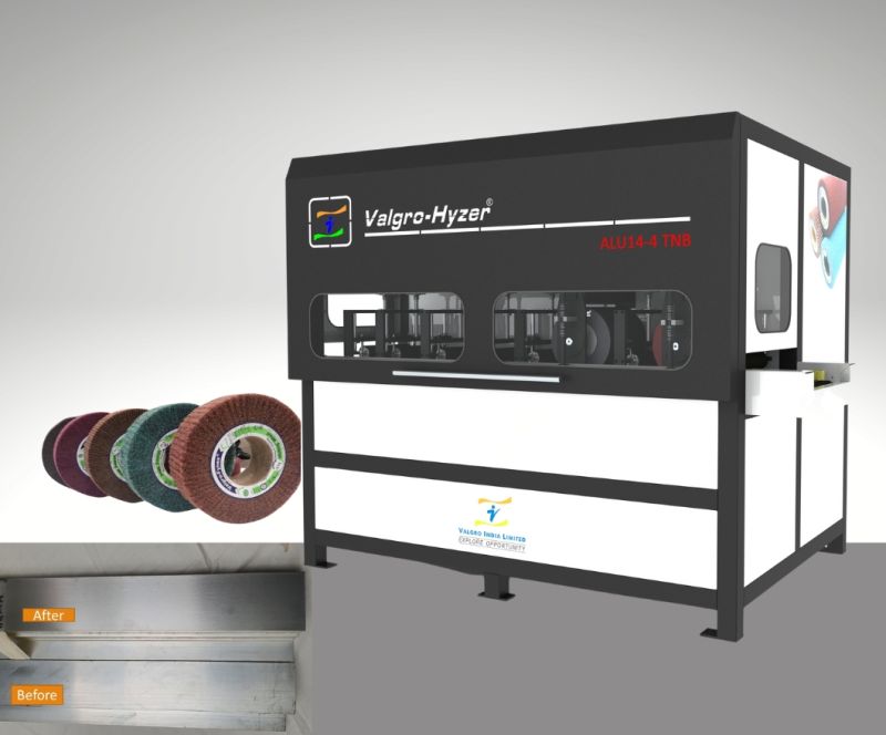 The Valgro Aluminium Profile Brushing Machine is designed for precision surface finishing of aluminium extrusion profiles, providing high-quality matt, hairline, and brush finishes. It effectively removes extrusion marks, scratches, and handling defects, ensuring a uniform grain pattern. Built for dry operation, the machine minimizes dust, power use, and maintenance, while reducing downstream etching and chemical costs.