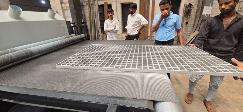 Ideal for fabricators, grating manufacturers, and sheet processing workshops requiring a mid-volume, high-efficiency sanding system
