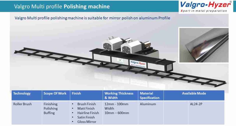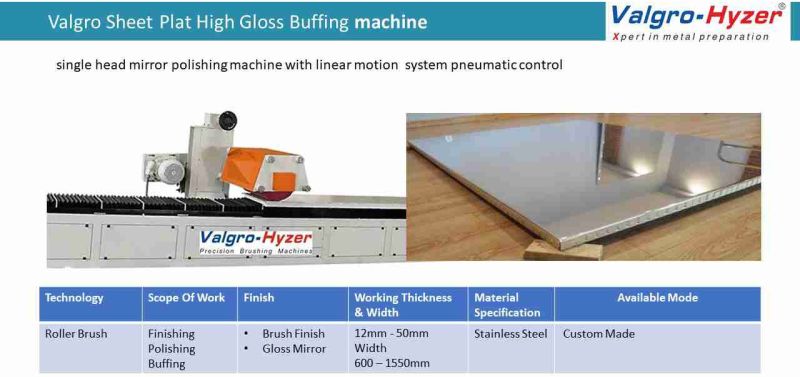 Achieve showroom-quality finishes with the Valgro High Gloss Mirror Polishing Machine — designed specifically for stainless steel sheets, aluminum profiles, and other metals that require ultra-bright, reflective “mirror-like” surfaces.